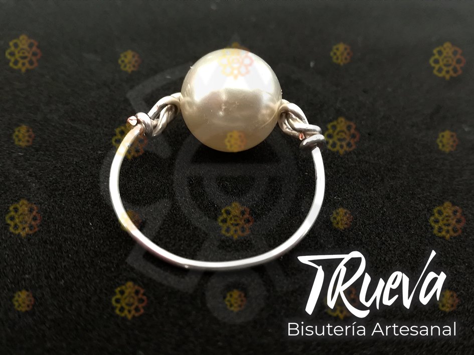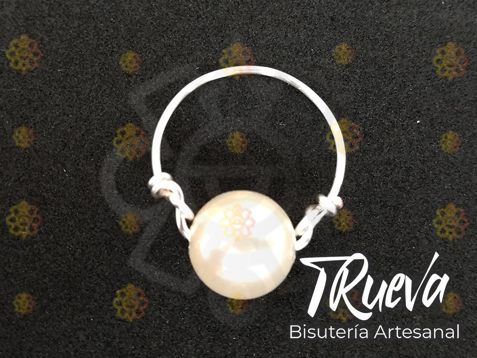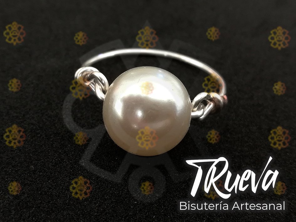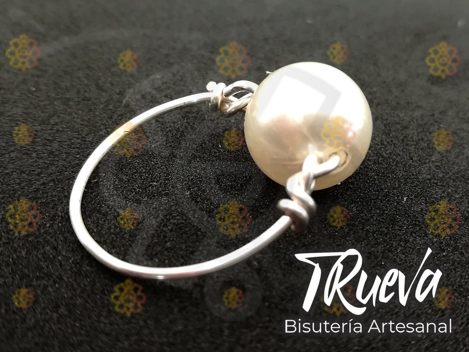 Anillo plateado de un hilo con perla de 8 mm, medida #8.5.