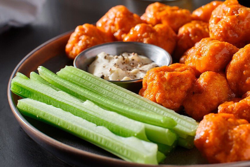 - Acompañadas de bastones de apio, zanahoria y aderezo ranch.