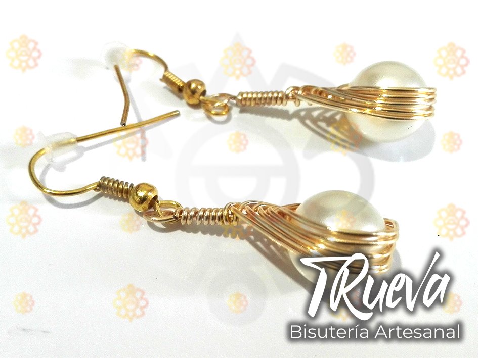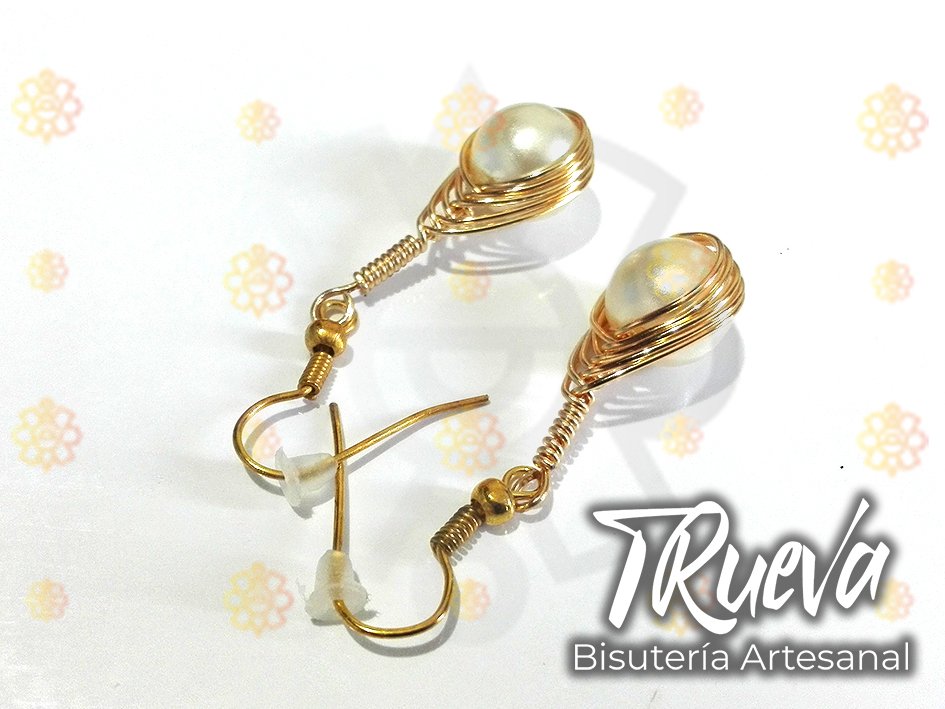 Pendientes dorados tramados con perla de 6mm y gancho.