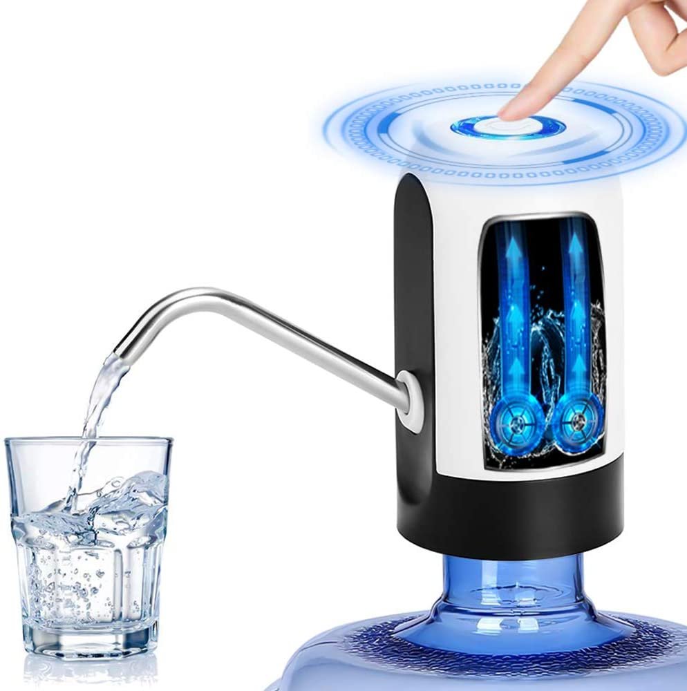 - Batería recargable incorporada de 1200 mAh. Se puede usar durante 30-40 días o alrededor de 4-6 botellas de agua de 5 galones una vez que esté completamente cargada.